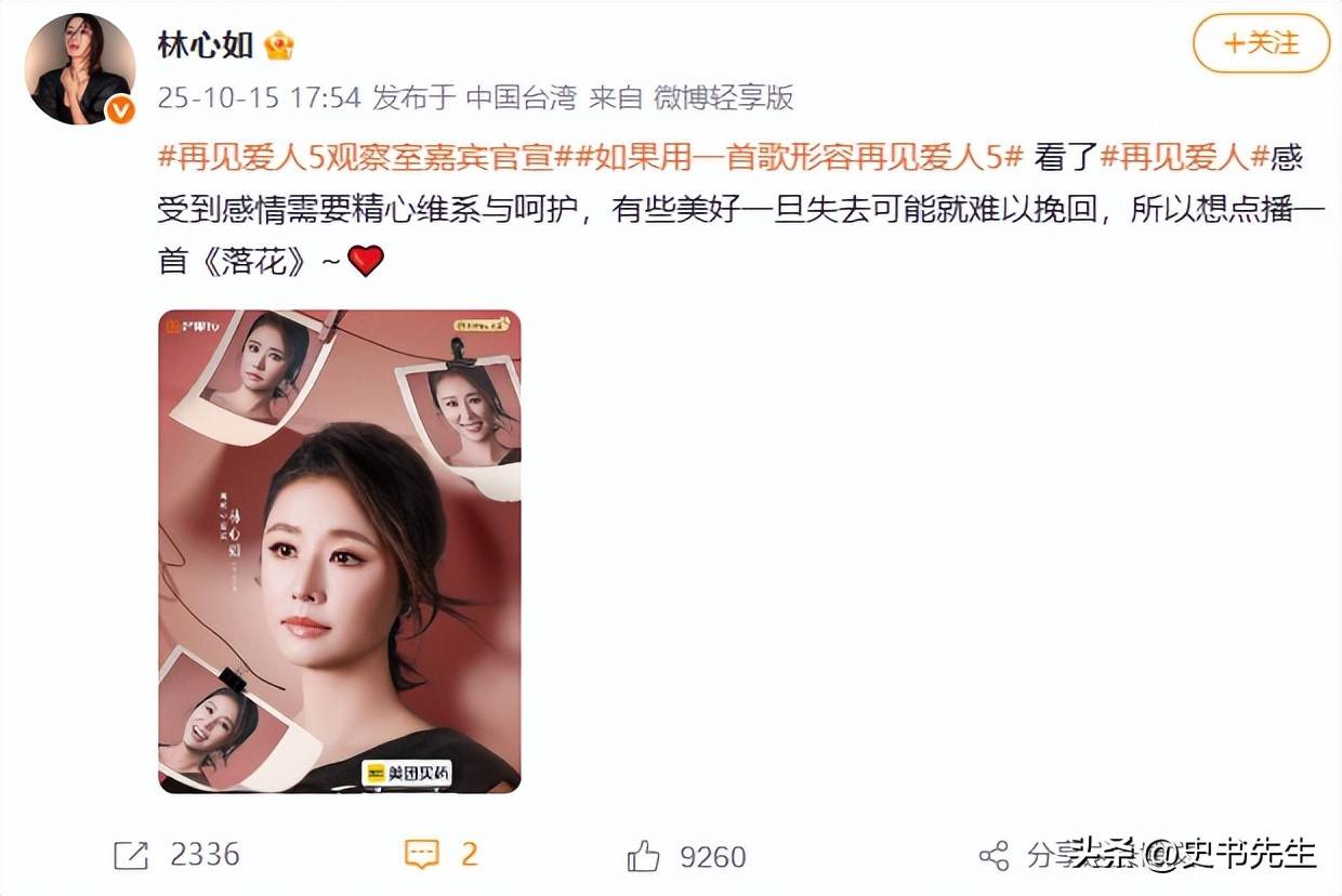 再仔细一看,并不是人家的感情出现了问题,而是林心如作为再见爱人的观察员出演,这是又重新出来工作赚钱了。