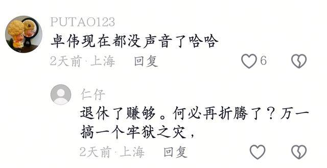 不过还是不少网友挺期待卓伟继续爆料,毕竟某些明星德不配位,如还未出狱的吴亦凡。