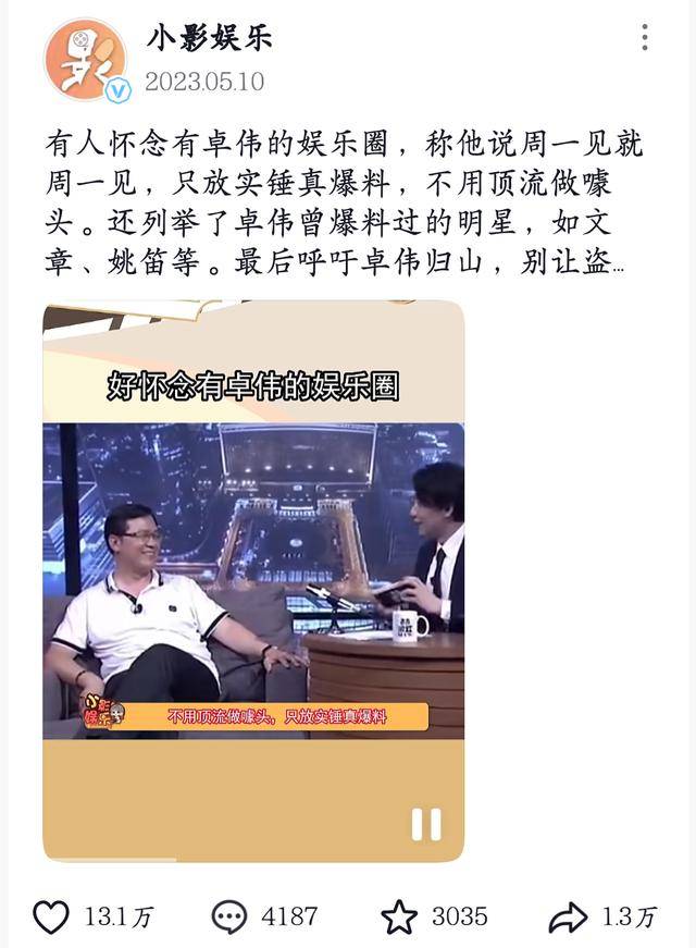 卓伟说周一见,就绝不会拖到周二说,每次曝出的猛料,都足够引爆全网。