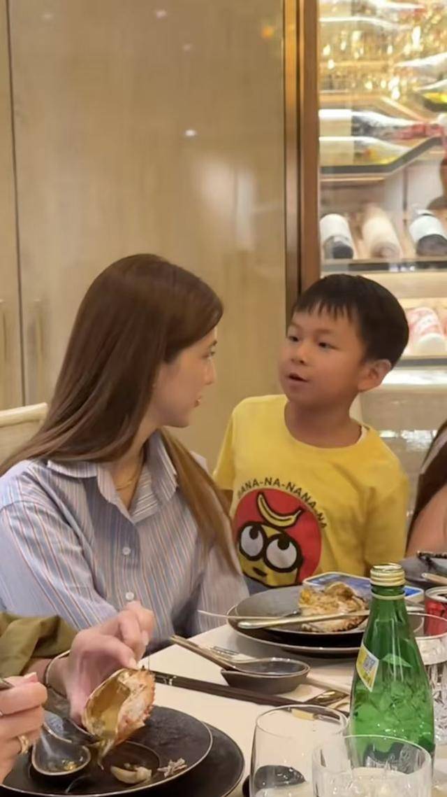 在聚会上,吴千语还不时抱着小朋友,与小朋友一起玩耍,展现出温柔的一面,同时也看得出连施家的小朋友都十分喜爱吴千语。