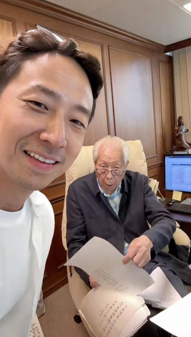 日前,施伯雄还曾在社交平台上晒出了与爷爷见面的片段,从影片中可以看到施伯雄与爷爷正在自拍,之后更是将爷爷与吴千语的互动也分享了出来。