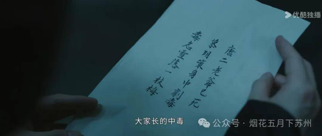 果不其然,大家长在中毒之后,并未把仇恨宣泄在唐二老爷身上。按照他的理解,唐二老爷不过是别人手中的刀,而执刀人才是真正的幕后黑手。