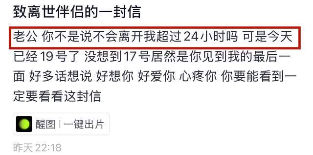 10月19号,有一位来自安徽的网友分享了一则“至离世伴侣的一封信”,言语中的真切言语让人泪目,同时还讲述了几点关于老公离世的原因,虽然不是很全面,但却可以看出,她的老公是一位非常优秀的帅哥。