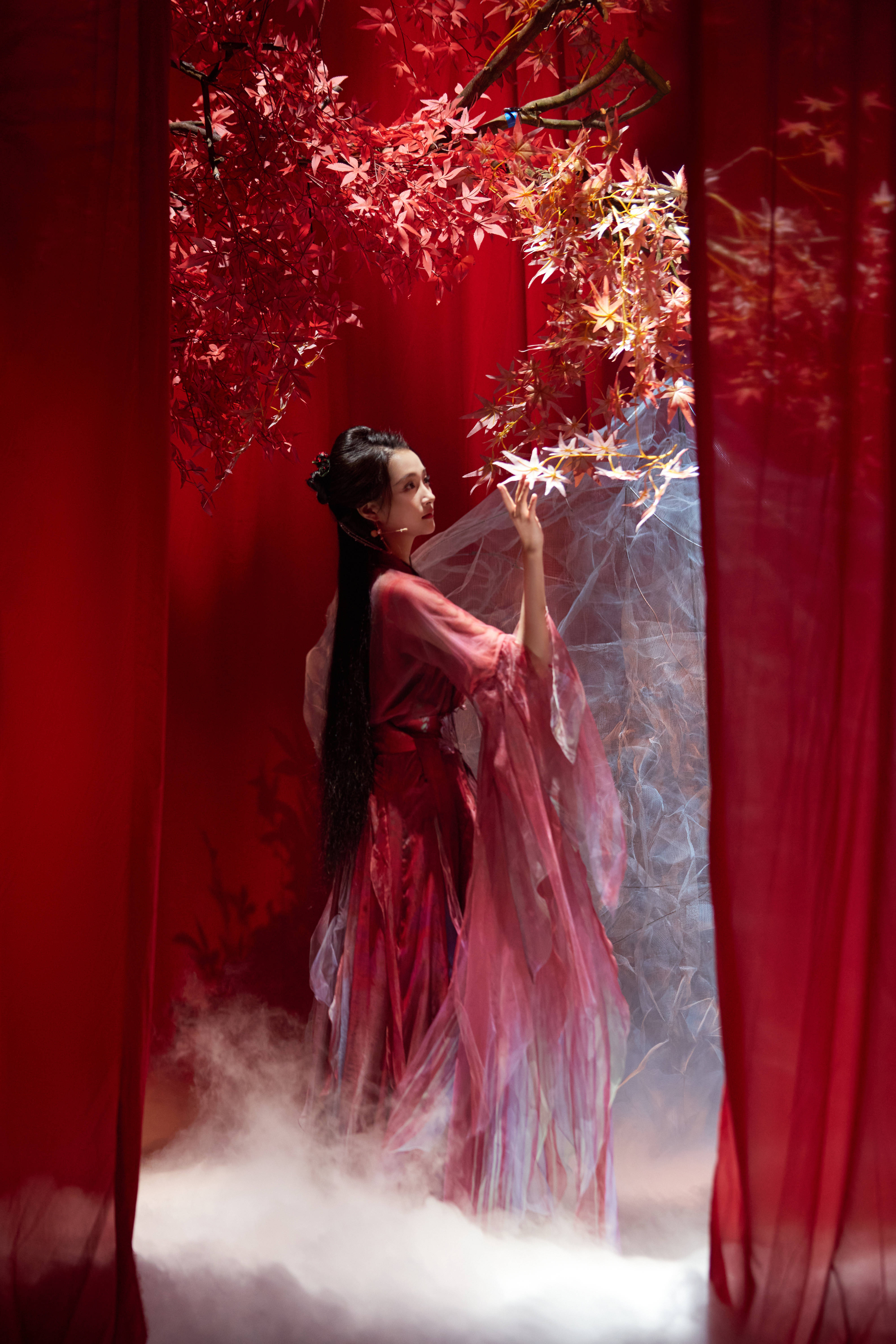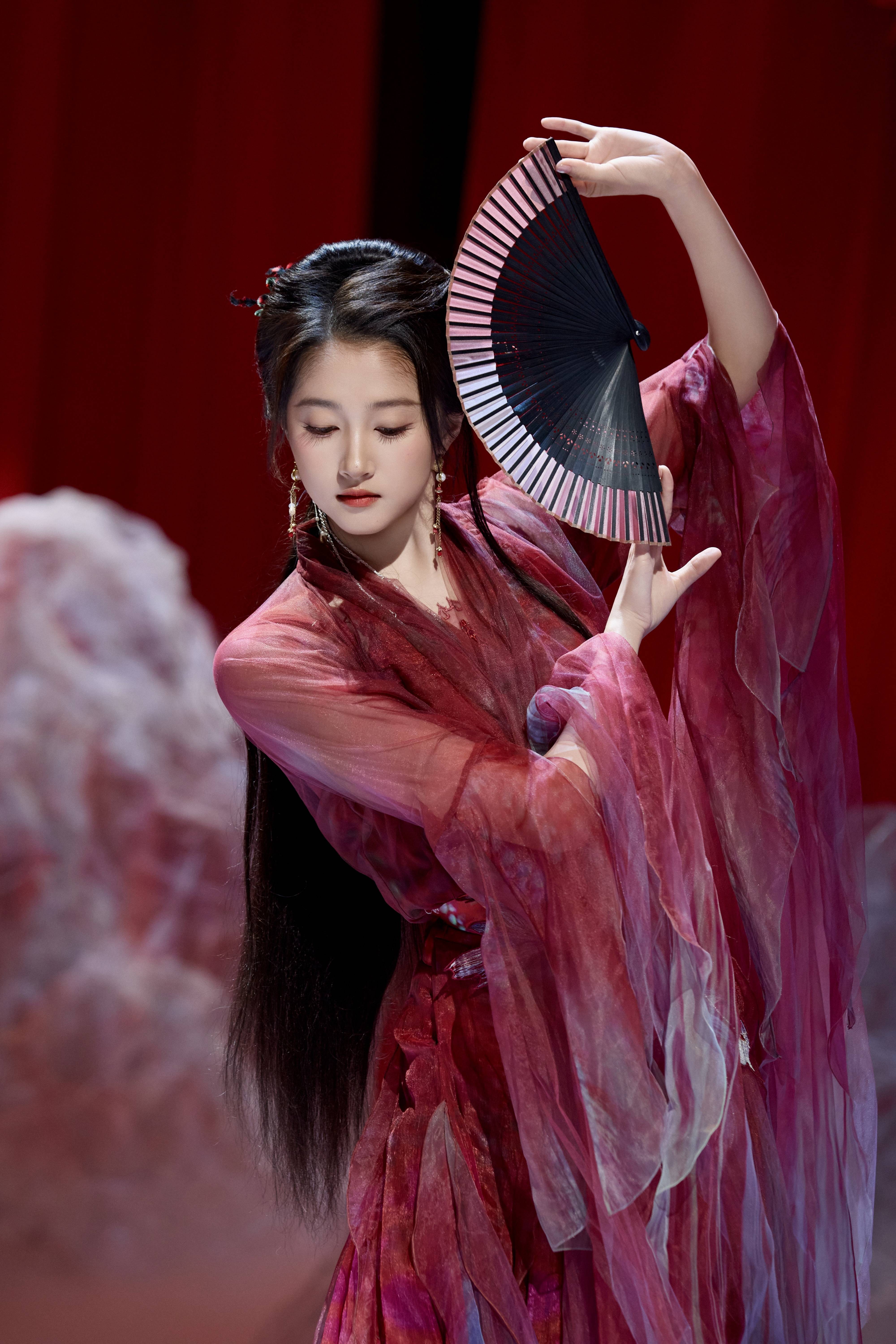 搜狐娱乐讯 日前,关晓彤工作室公开一组关晓彤的舞台随拍,照片里的她穿一袭红衣,身姿翩跹,手持折扇,宛如画中仙。