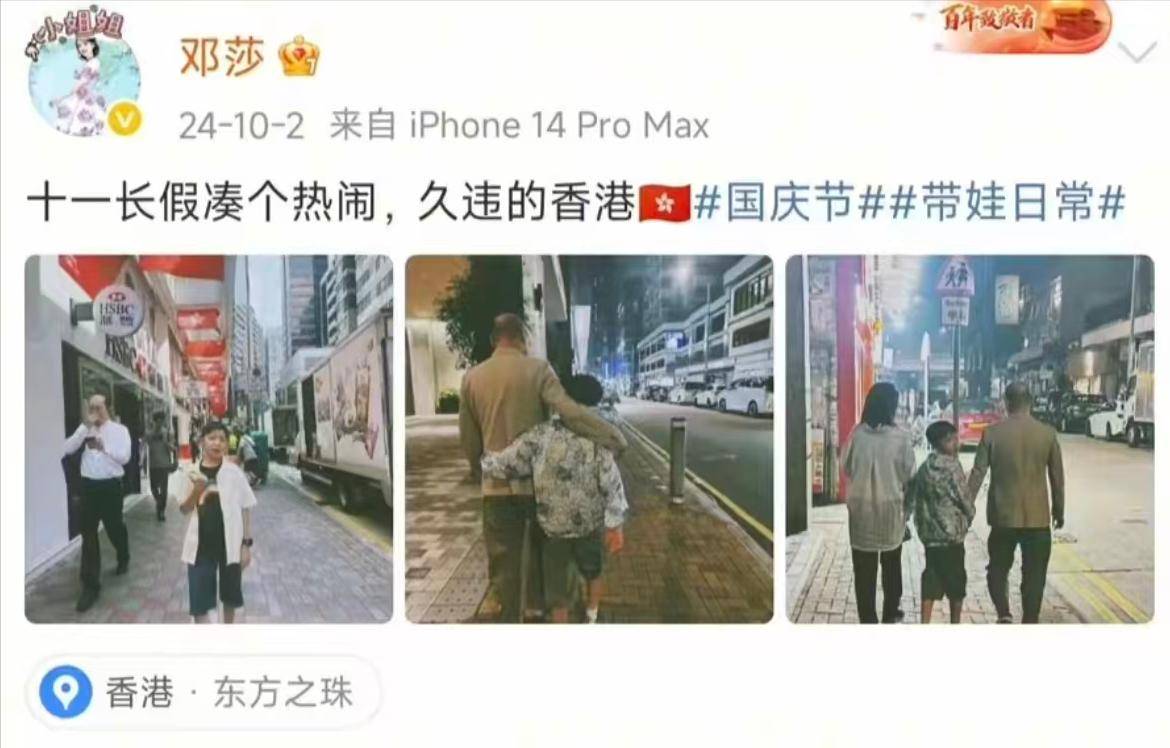 有人翻出她去年国庆晒的照片,一家三口去香港旅游,画面里路行一手搂着儿子,父子俩笑得亲密无间。