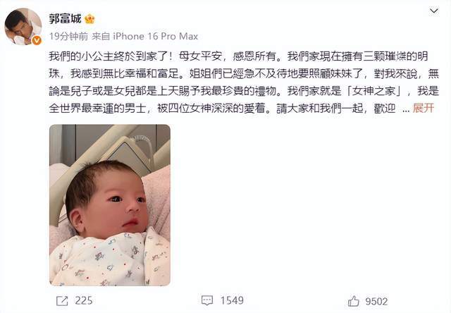 除了公开喜讯之外,郭富城还特地晒出女儿的正面萌照,这一点对比内地艺人来说,真的很大方,同时也说明港星的朴素贴地。