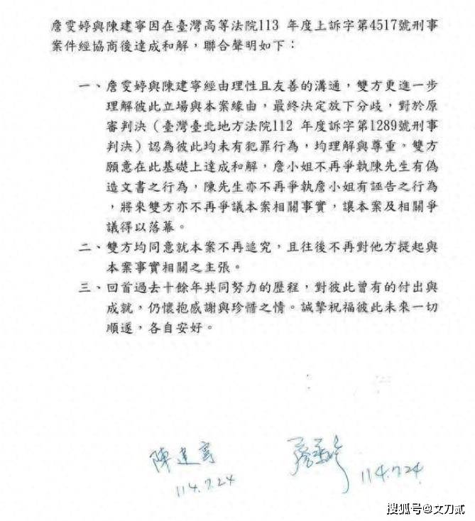 詹雯婷咽不下这口气,甩出陈建宁“伪造”签名的证据,跟他对簿公堂。
