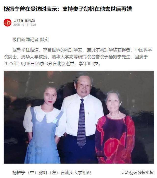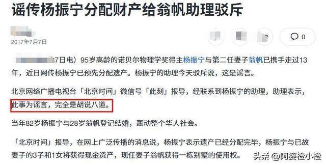 这样的言论不仅否定了杨振宁先生的所有真诚,更是磨灭了翁帆这21年的真心陪伴与照顾。