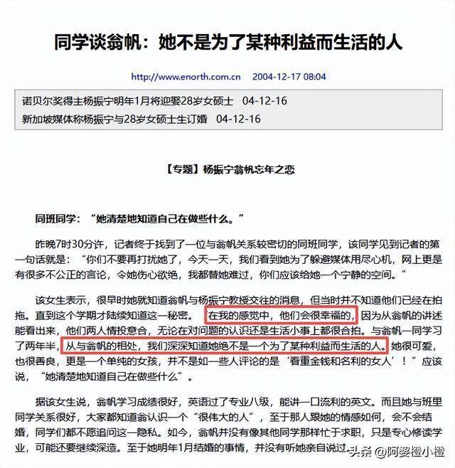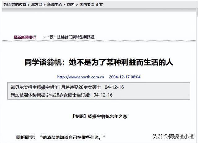其实翁帆与杨振宁两位跨世纪爱情的故事,早在翁帆同学的言论里就向大家透露过了。