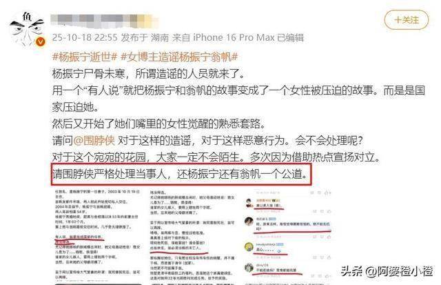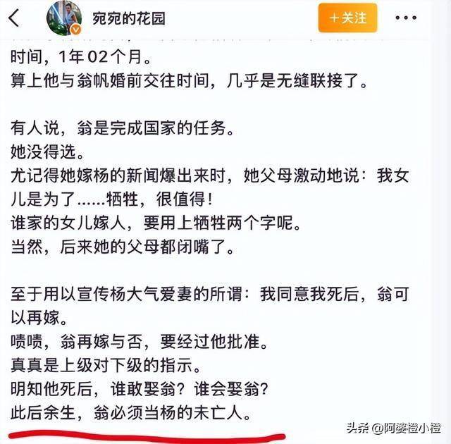 还有个叫 “宛宛的花园” 的账号,故意歪曲杨振宁生前的话,把他和翁帆的关系说成是 “女性被压迫”,就为了蹭热度赚流量。