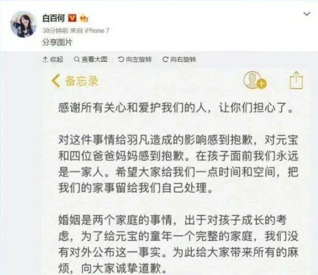 几天后,陈羽凡出面发声,称两人早在2015年就已经协议离婚,并宣布“无限时退出娱乐圈”。