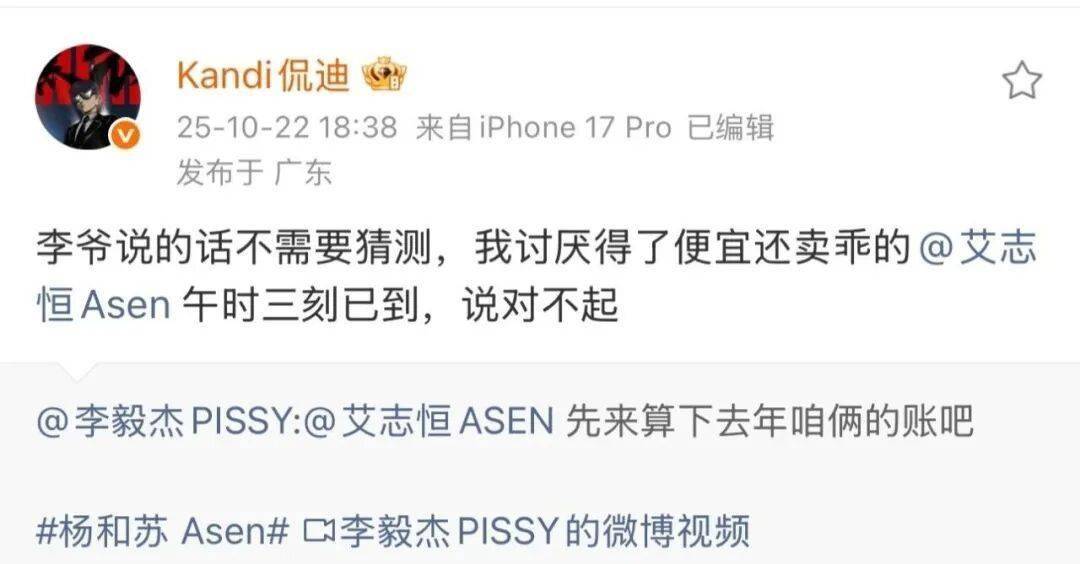 小李pissy点名Asen,喊话要算去年的账,发布了diss《给Asen的信》!