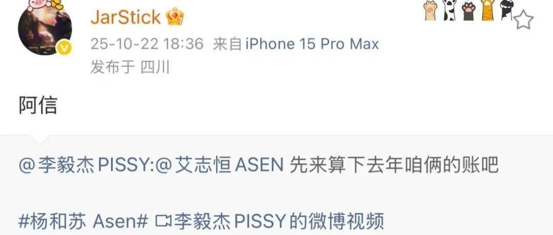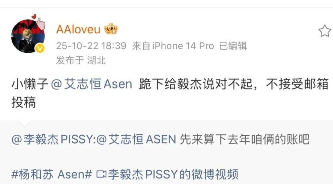 就在今天,杨和苏点名开火Asen,开怼其没完没了,装上了!