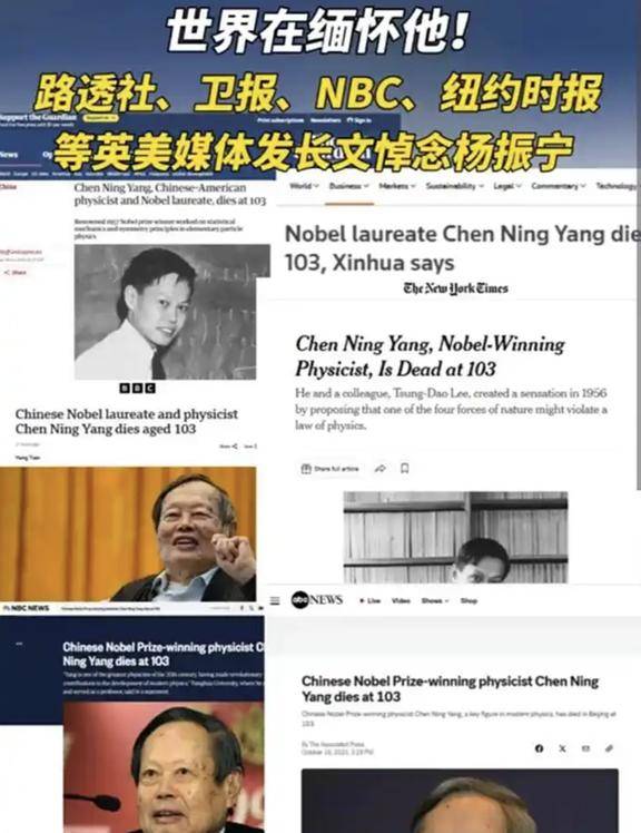 路透社、美联社、BBC、卫报、纽约时报这些国际媒体都发了文章悼念,还在里面提到杨振宁对人类做出的伟大贡献。