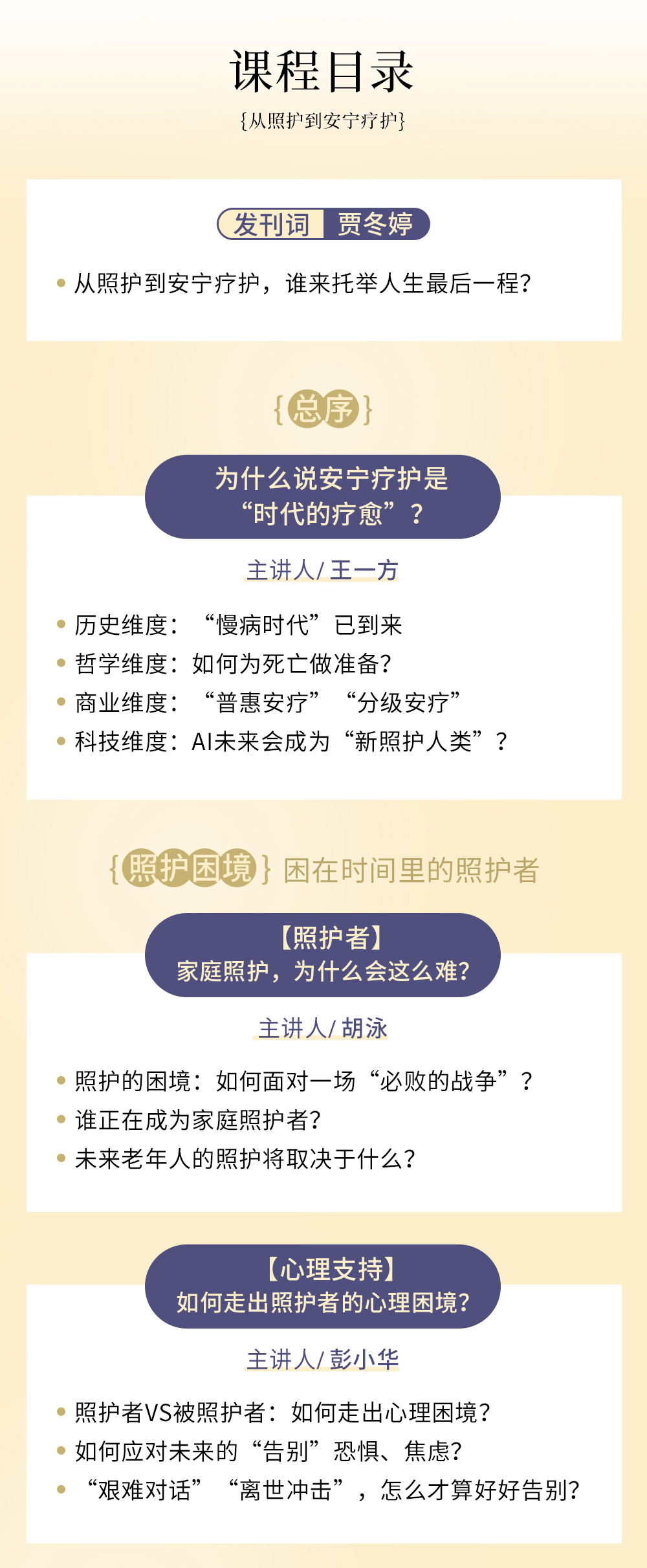 于是三联中读推出了“生命教育”系列课程《王一方·医生不曾告诉你的生命哲学课》和《从照护到安宁疗护》,邀请6位一线专家,共同打通医学、人文、照护的3重视角。