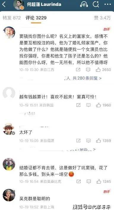 粉丝怒斥何超莲 “白嫖窦骁积蓄”“靠男方当娱乐圈跳板”,甚至要求 “退还 5000 万婚礼费”;其事发后发布的美食视频下,满是 “放过窦骁”“窦骁比窦娥还惨” 的嘲讽,因未回应反而晒笑容,被指 “毫无同理心”;还有网友以 “理性分析” 诛心,牵连赌王家族 —— 吐槽三太 “上位不光彩”“防女婿如防贼”,顺带提及何家兄长感情不顺,将个体矛盾升级为家族批判。