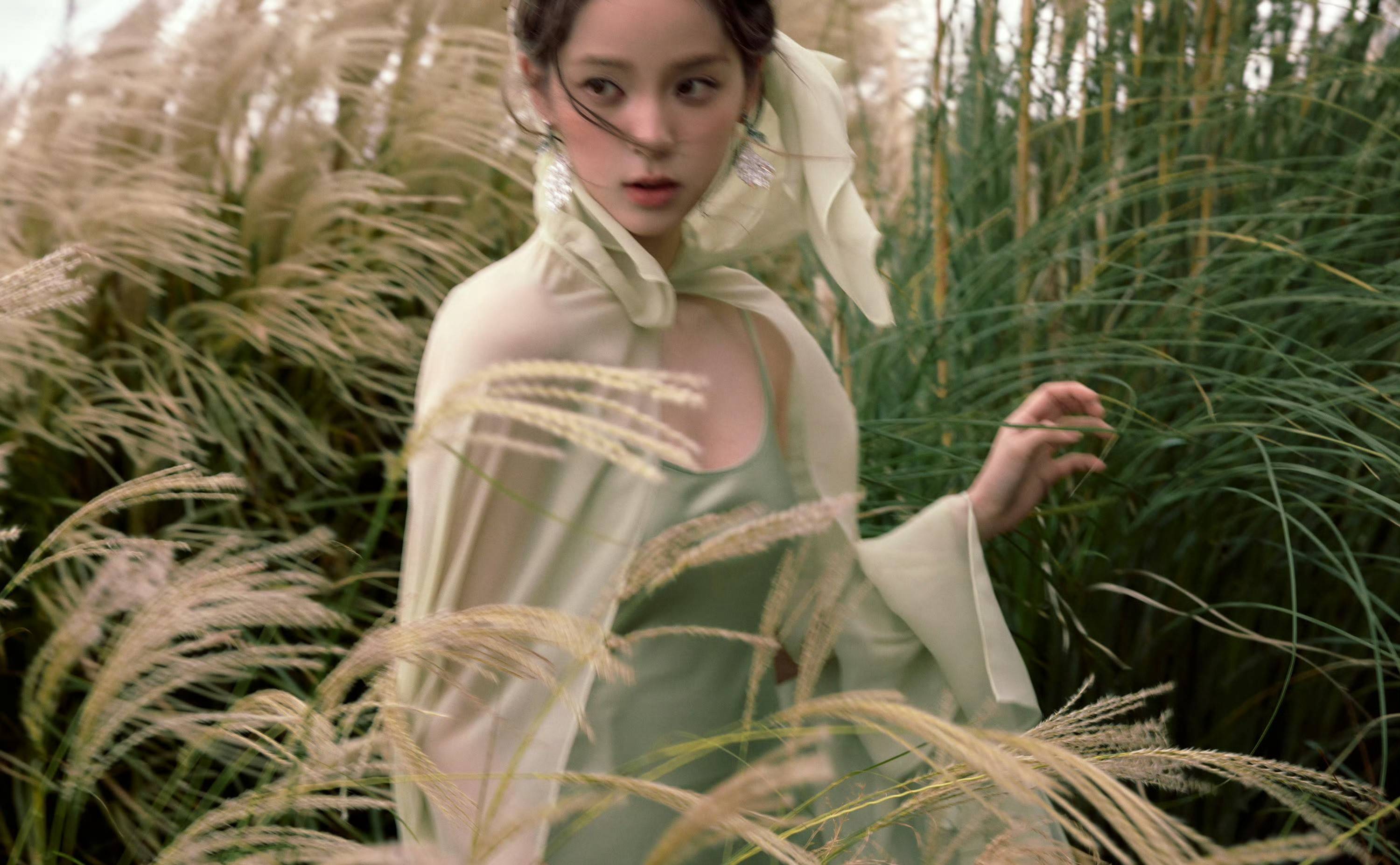 欧阳娜娜在芦苇丛中,纱衣飘逸。