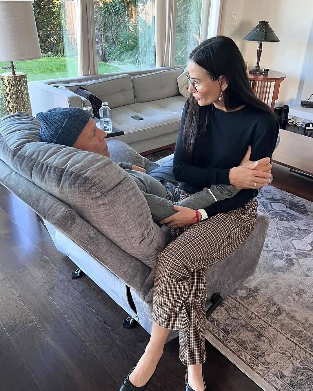 这3年来,老布的前妻黛米·摩尔也常带着三个女儿去看望他。