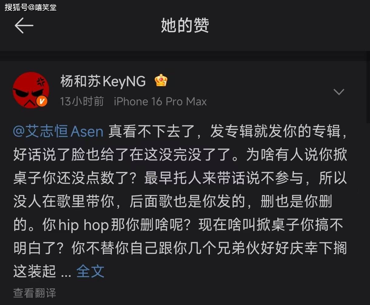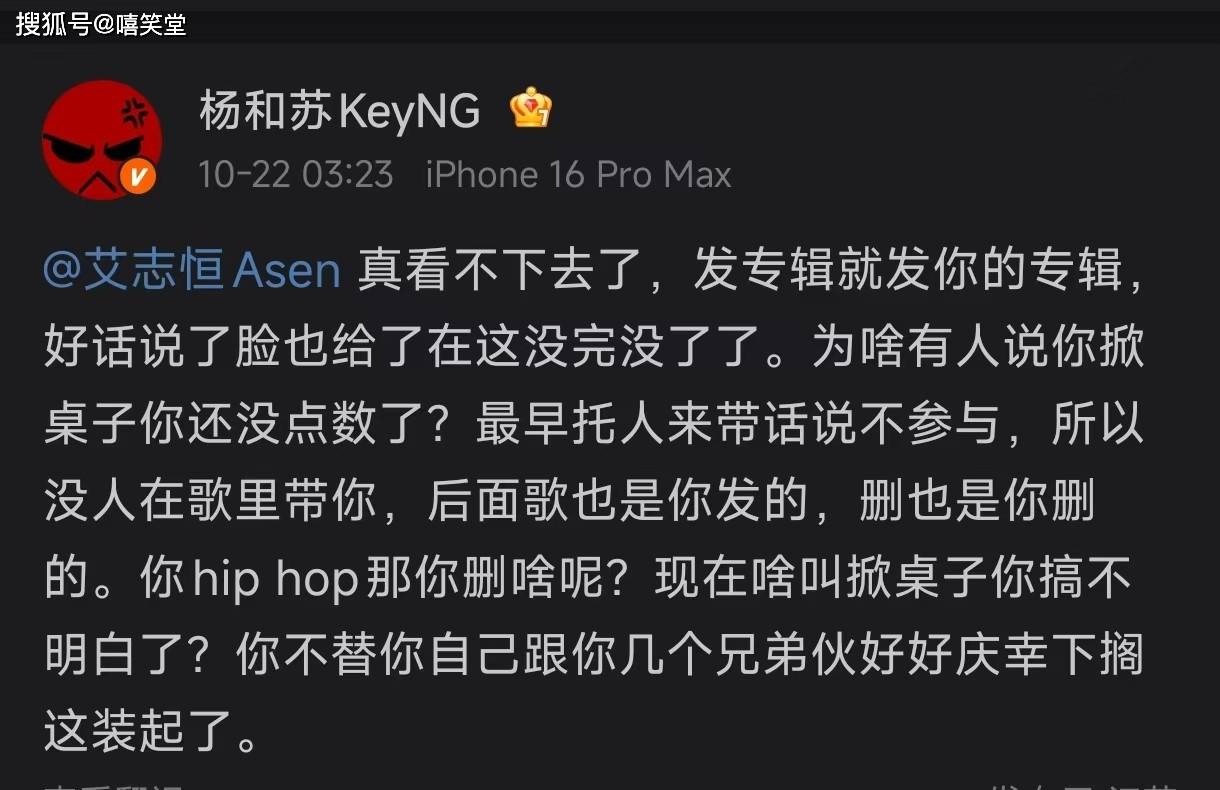 杨和苏还指出,最初ASEN托人和他说不参与BEEF,最终杨和苏和法老都没有DISS他。