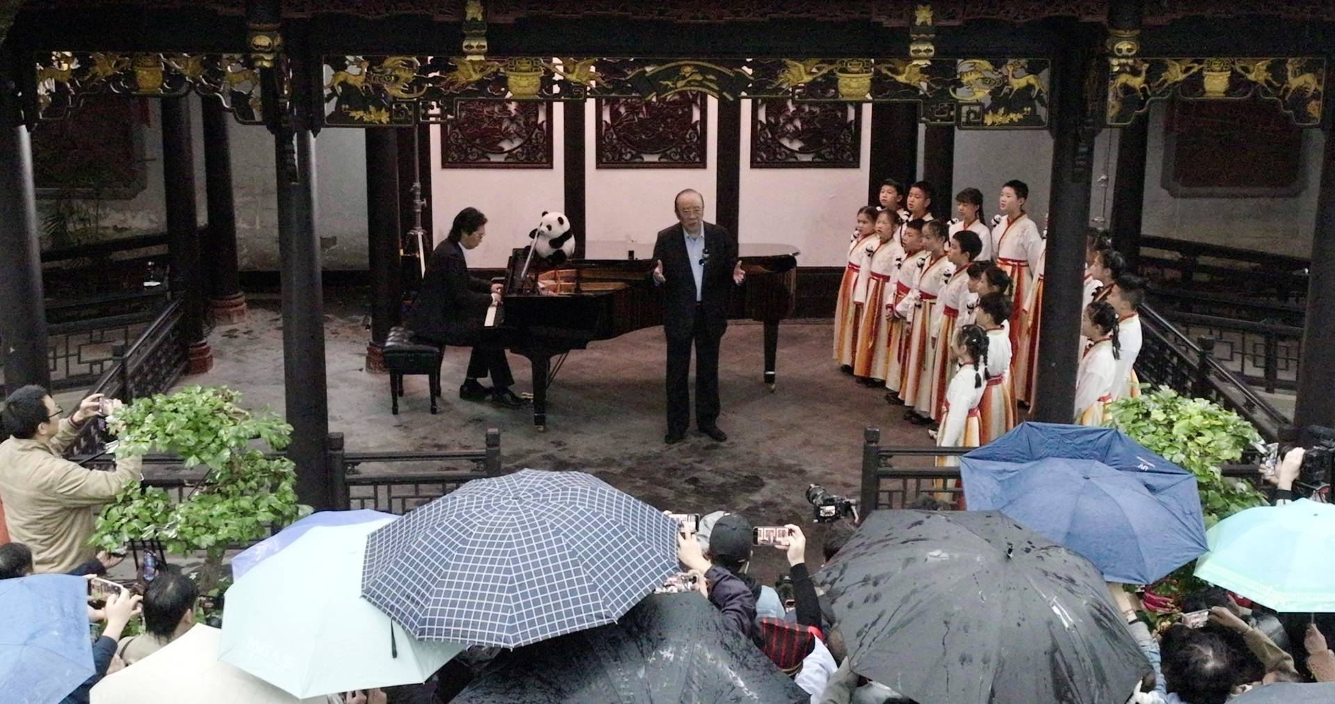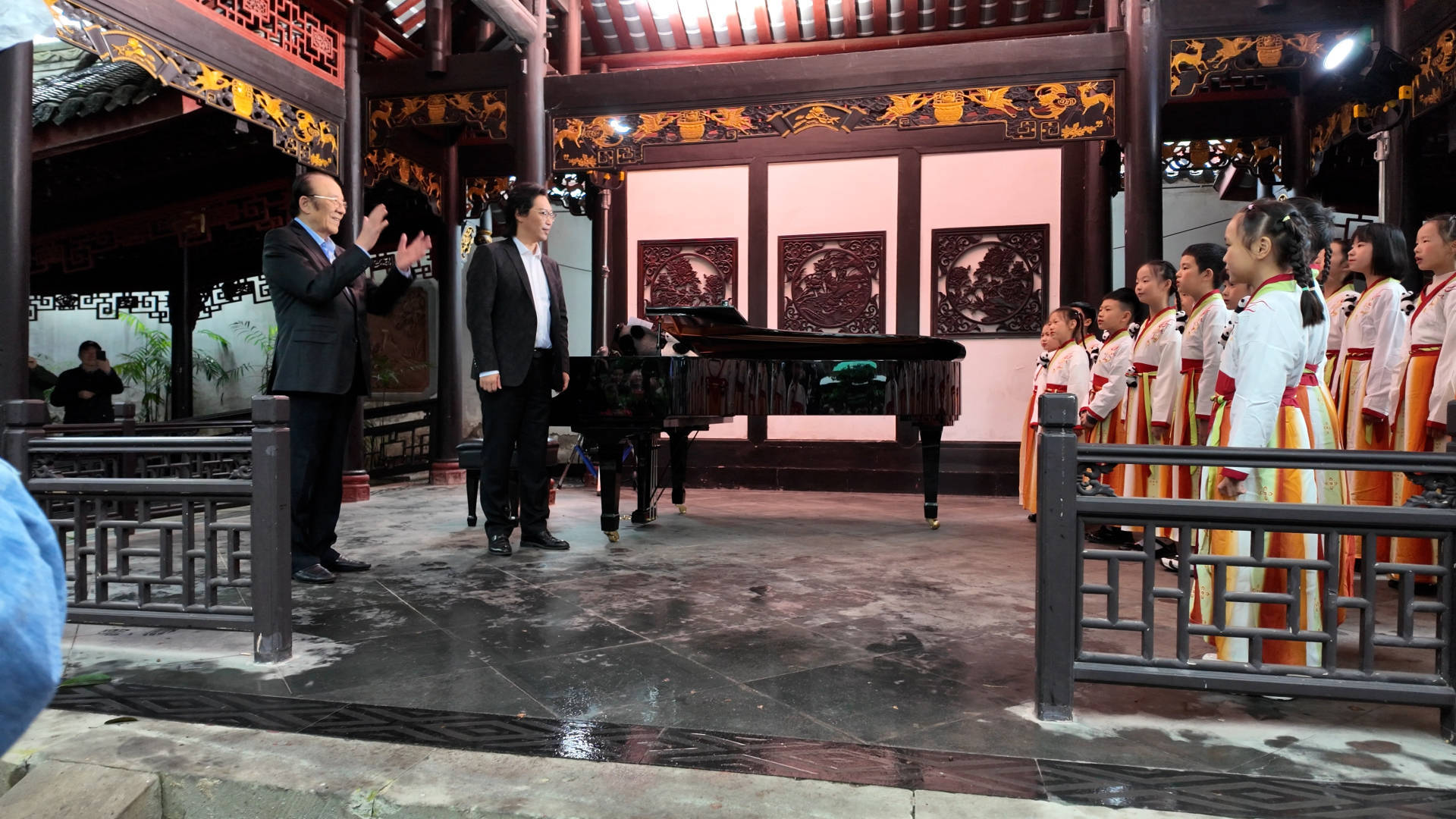 这是第十五届中国音乐金钟奖的快闪活动之一,本次活动邀请到著名歌唱家杨洪基,与成都本地孩童及广大市民共同演绎经典名曲《滚滚长江东逝水》,大家在音乐的流动中,完成了一场跨越时空的文化对话。