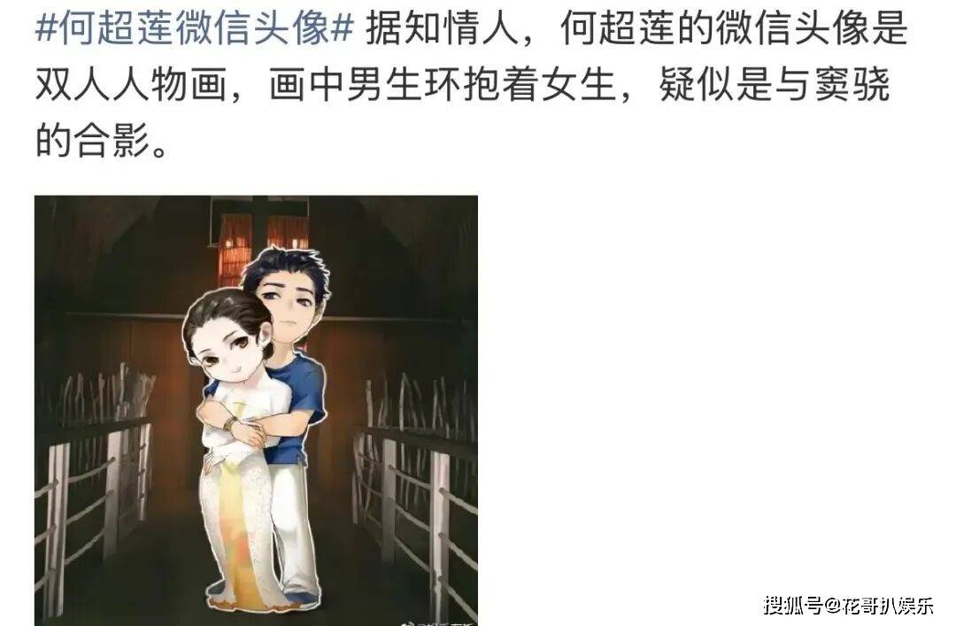 不仅如此,何超莲的某信头像也被曝光,头像是一幅她和窦骁拥抱的动漫画像,看起来甜蜜又温馨。离婚风波闹了这么久,居然还留着双人头像,看来对这段感情还有留恋的是何超莲,言下之意,窦骁才是那个冷漠无情,一心想要离婚的人。