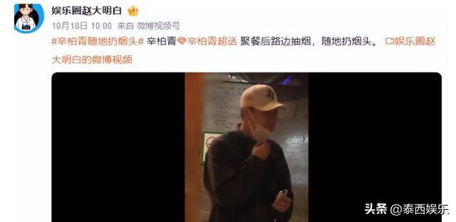 当时有狗仔拍到辛柏青和老友聚会,视频里的他戴着帽子和口罩,一身黑衣与好友相聚,难得露出了几次笑容,眼睛都快眯成了一条缝。可争议的焦点却集中在他抽烟的动作上 —— 两根烟抽完后,他都随手扔在地上,用脚蹭了两下熄灭。