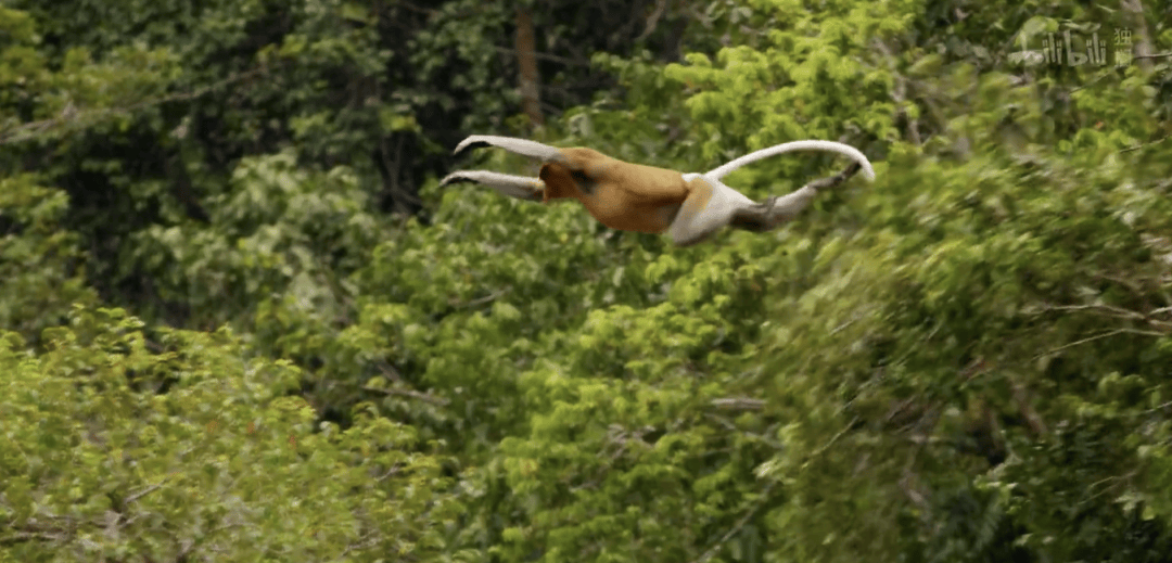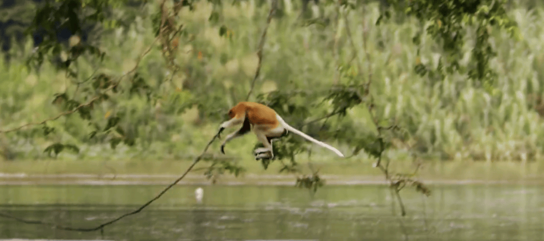 好在这些长鼻猴也进化出了强大的技能,联趾的手脚让他们能快速而安静地渡河,而天生的好水性也能帮助他们躲过湾鳄的巡视。