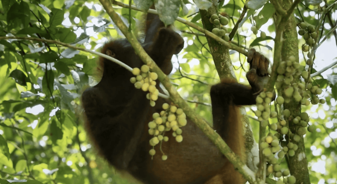 低热量的树叶不能完全饱腹,它还必须在丛林中找到一些富含能量的果实来填饱肚子。