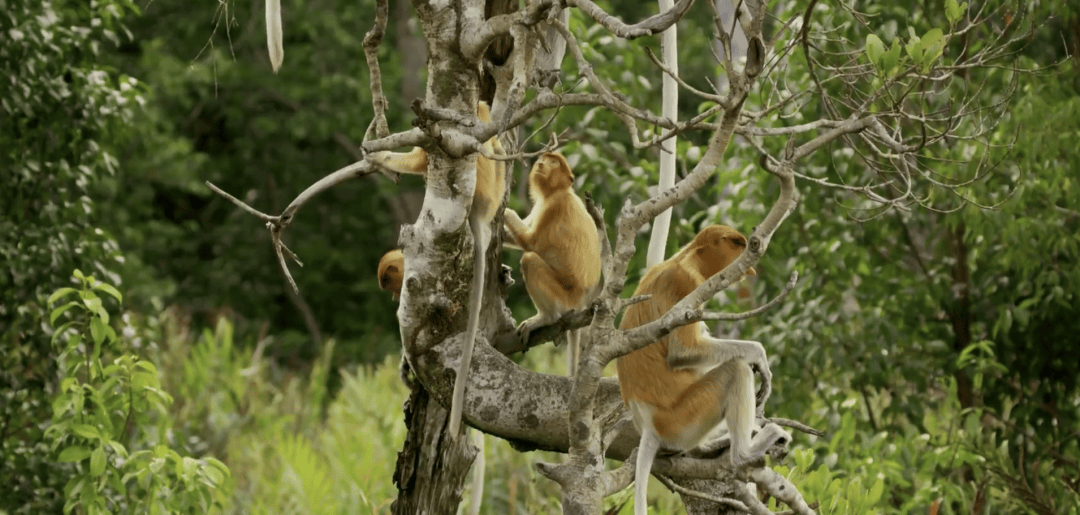 好在紧密的家族联系和极强的适应性,让长鼻猴能够在这片河流密布的丛林世界繁衍兴旺。