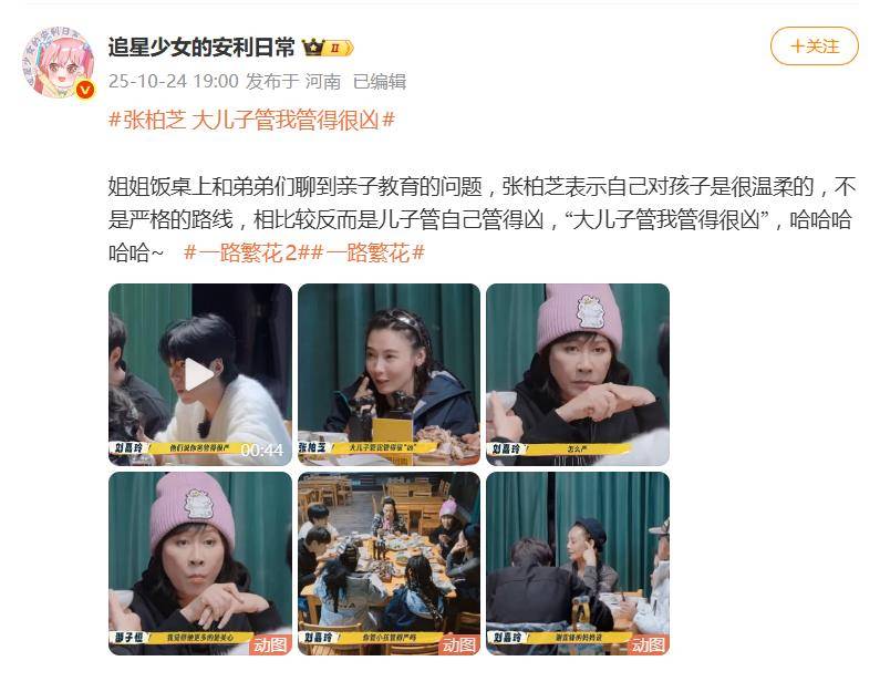 10月24日,有网友爆料,张柏芝在综艺《一路繁花2》中聊起和大儿子Lucas的相处细节,一句“他管我管得很凶”瞬间引爆热议。节目中,这位以温柔教育闻名的妈妈,竟在18岁的儿子面前“不敢喘气”,反转剧情让观众直呼“没想到”。