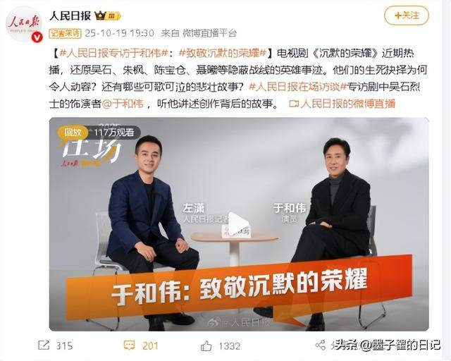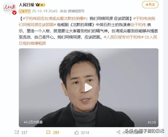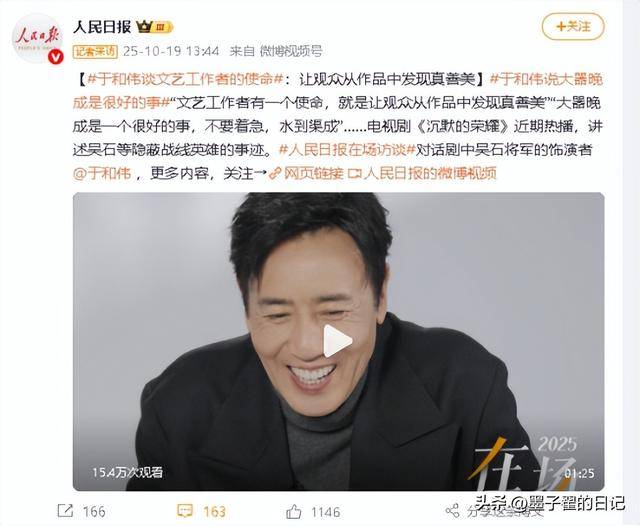 10月18日至19日,短短48小时里,《人民日报》微博账号连续发布4条内容,全都聚焦同一个人,不是顶流爱豆,没有热搜话题,更无绯闻加持,他就是演员于和伟。