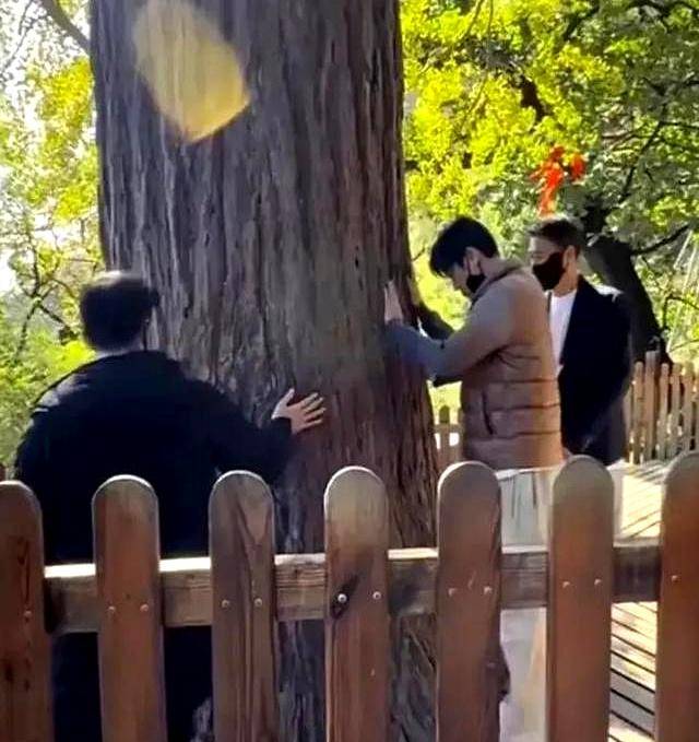 那一天,辛柏青和女儿也围着银杏树安静地走了几圈,他看着树干发呆,似乎在默默诉说心中的执念。