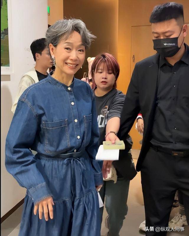 为了贴近角色,她特意没做浓妆掩盖皱纹,连衣服都选的接地气的款式。