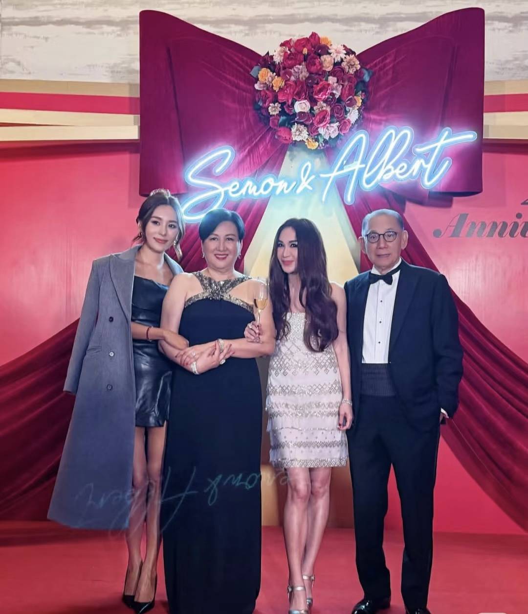 这一次阿娇回香港,是为了庆祝老板杨受成40周年的结婚纪念日。英皇老板庆祝红宝石婚,旗下的艺人大部分都来了,除此之外刘銮雄、向太夫妇也罕见露面。