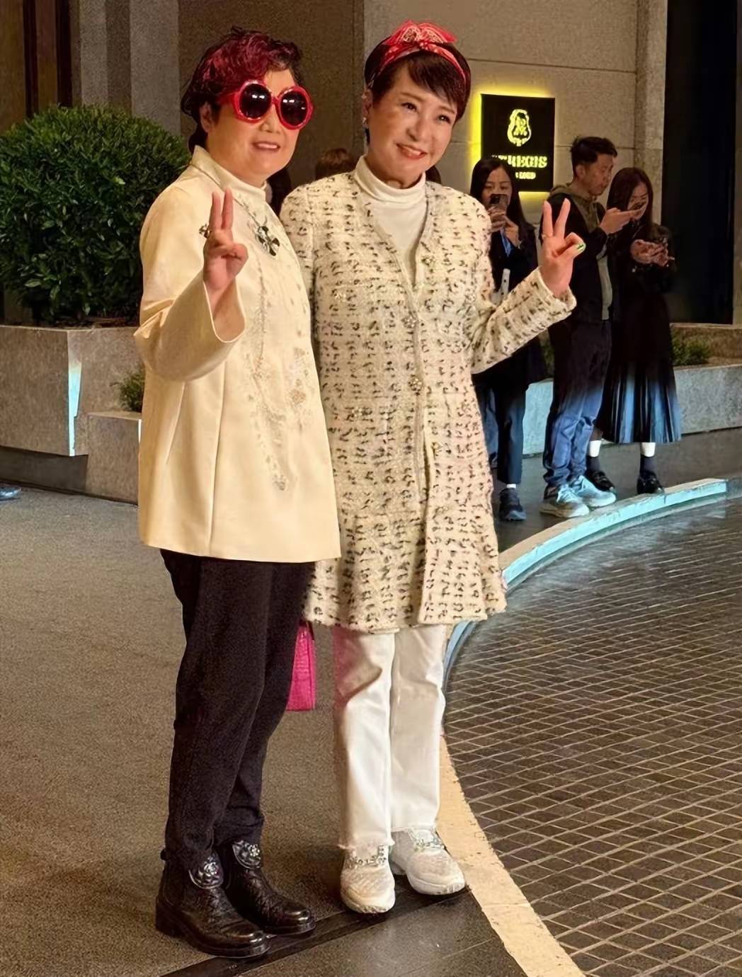 谢霆锋作为英皇旗下最火的男歌手,她的母亲狄波拉也来了。狄波拉还是经典造型,戴着蝴蝶结发箍可可爱爱的。