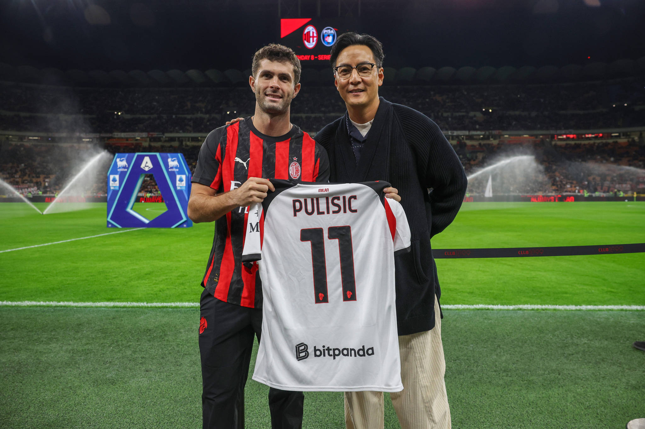 搜狐娱乐讯(视觉中国/图)当地时间2025年10月24日,意大利米兰,25/26意甲第8轮,AC米兰Vs比萨,吴彦祖观看意甲比赛,获赠普利西奇签名球衣。