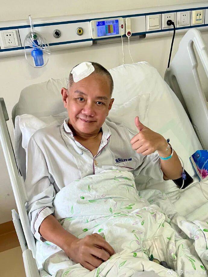 随微博消息发出的多张图片显示,病床上的李偲菘头发已剃光,且头上粘着胶布,显然已做了脑部手术。