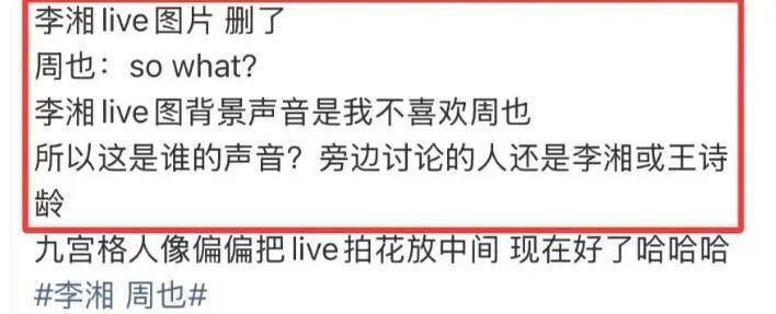 而live图片的背景声音中清楚地提到了一句话,“我不喜欢周也”。