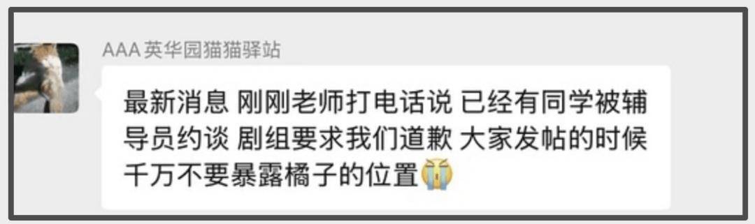 有校内的猫猫驿站工作人员从旁证实,那名学生在发布这个消息之后,很快就被专业的辅导员约谈。
