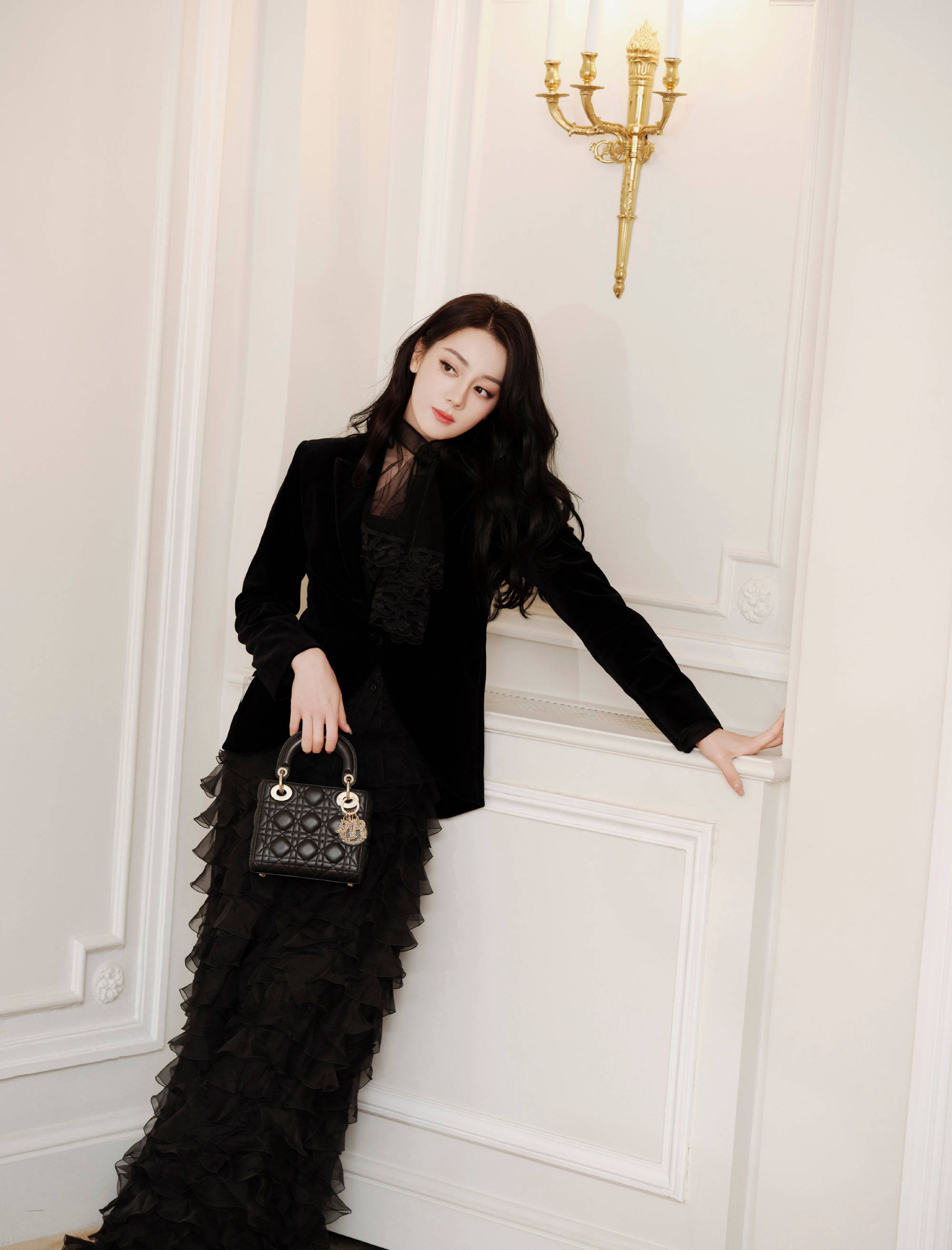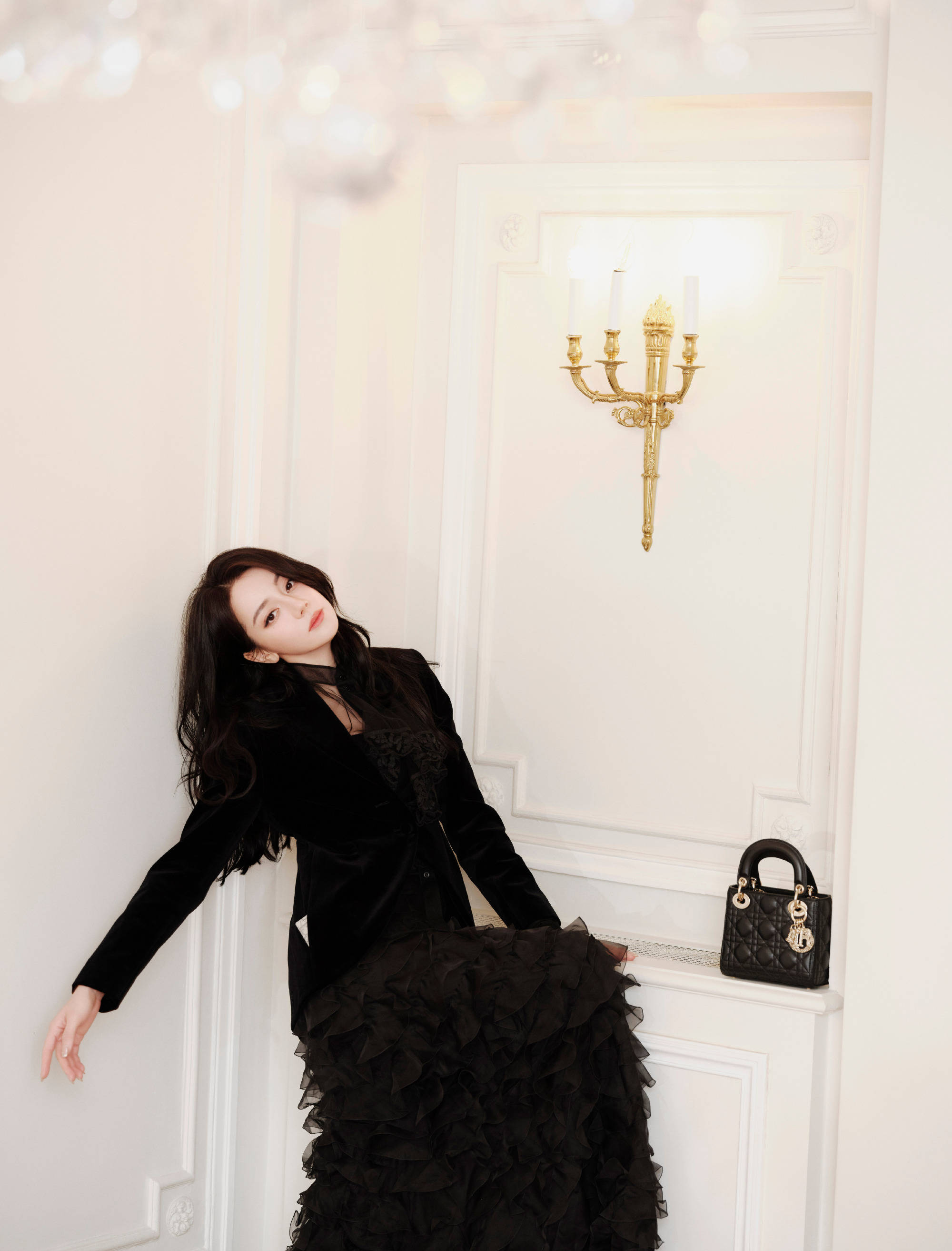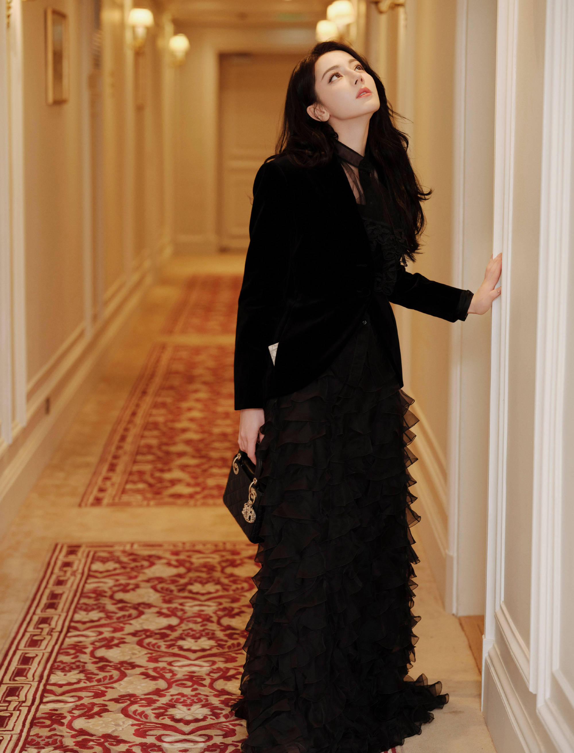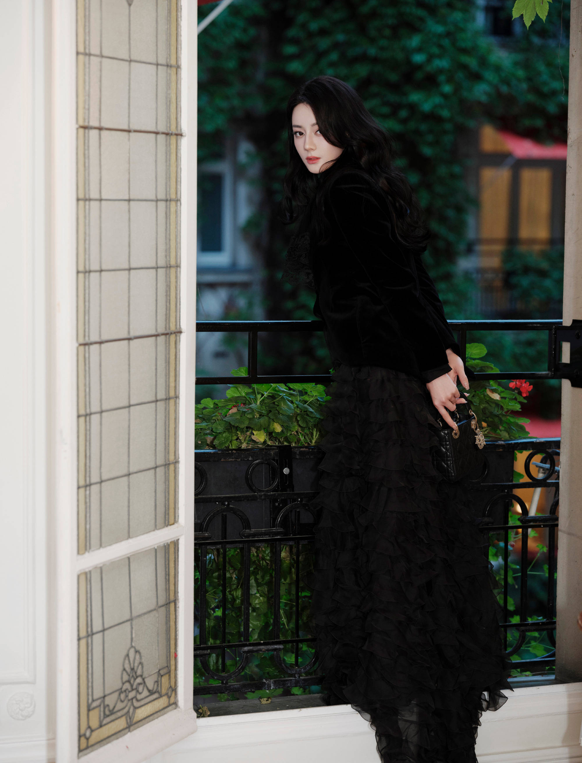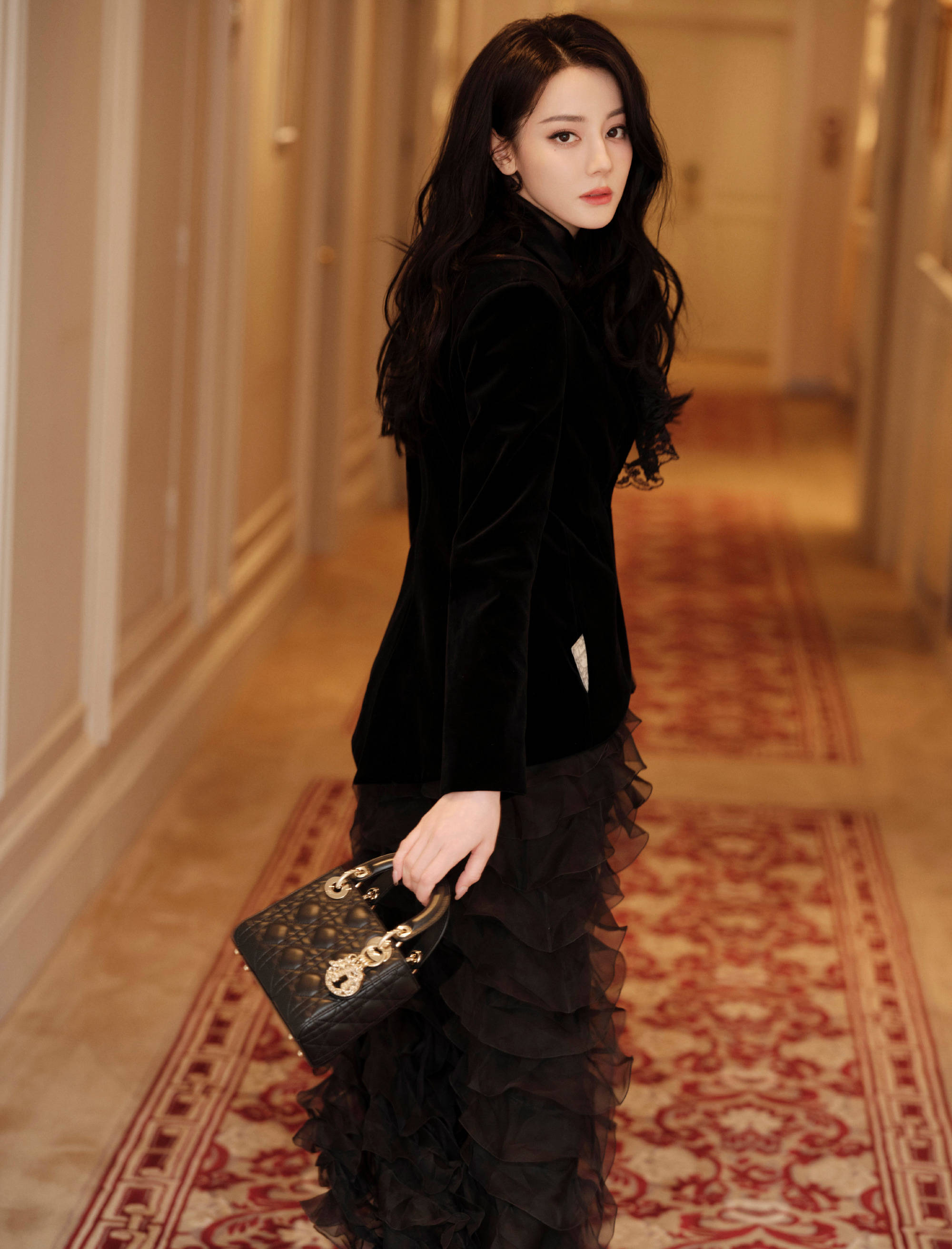 迪丽热巴一身全黑look宛若优雅黑天鹅。