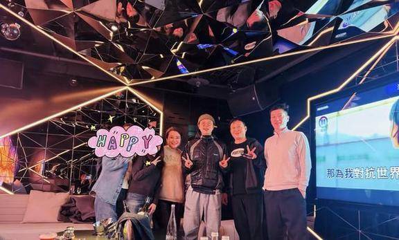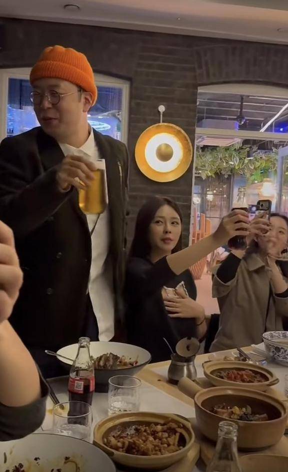 杜海涛和朋友们一起嗨皮,他喝的是啤酒,沈梦辰喝的可乐,大家都拿着手机拍照,杜海涛还站起来感谢朋友们。