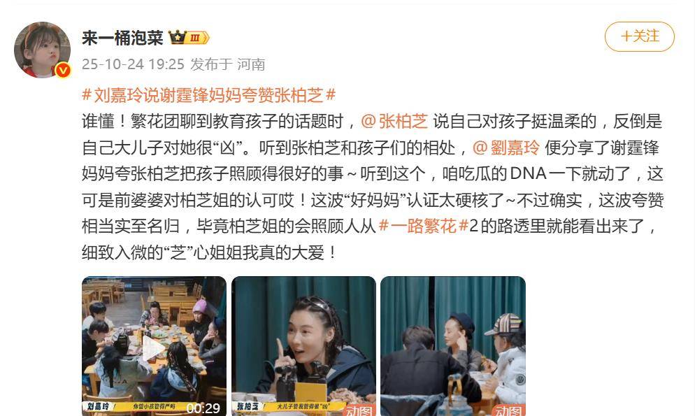 在最新一集的《一路繁花2》中,张柏芝分享了她关于育儿的经验,意外引发了来自“前婆婆”狄波拉的隔空表扬。当张柏芝提到自己在照顾孩子时总是温柔体贴,然而大儿子Lucas却总是“管得很严格”时,刘嘉玲在一旁透露了一句意外的话:“谢霆锋的妈妈曾对我说过,你把两个孩子照顾得非常好。”这番话看似轻描淡写,却在网上引起了轩然大波——这可不只是普通的夸奖,它无疑打破了多年婆媳关系紧张的传闻,也成了外界对张柏芝育儿态度的“世纪认证”!