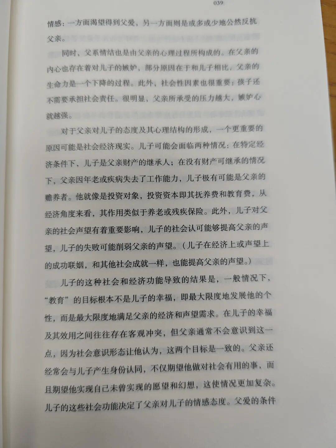 在一个家庭里,父亲与孩子的关系中,排在第一位的不是无条件的爱,而是赡养者与被赡养者的角色的互动。