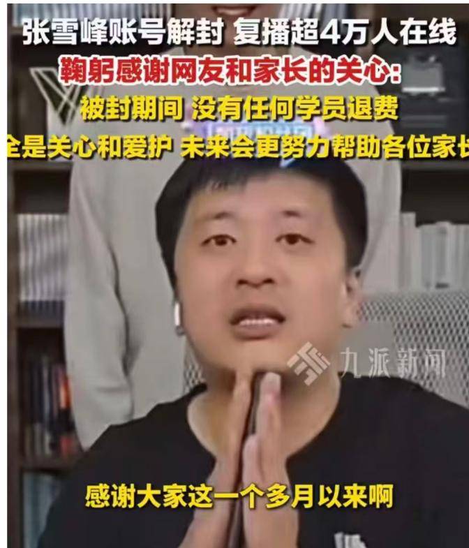 当晚的首次复播,峰值在线人数超4万,弹幕被“终于等到你”刷屏,而且张雪峰本人还在直播中袒露,封禁期间并无学员退费。