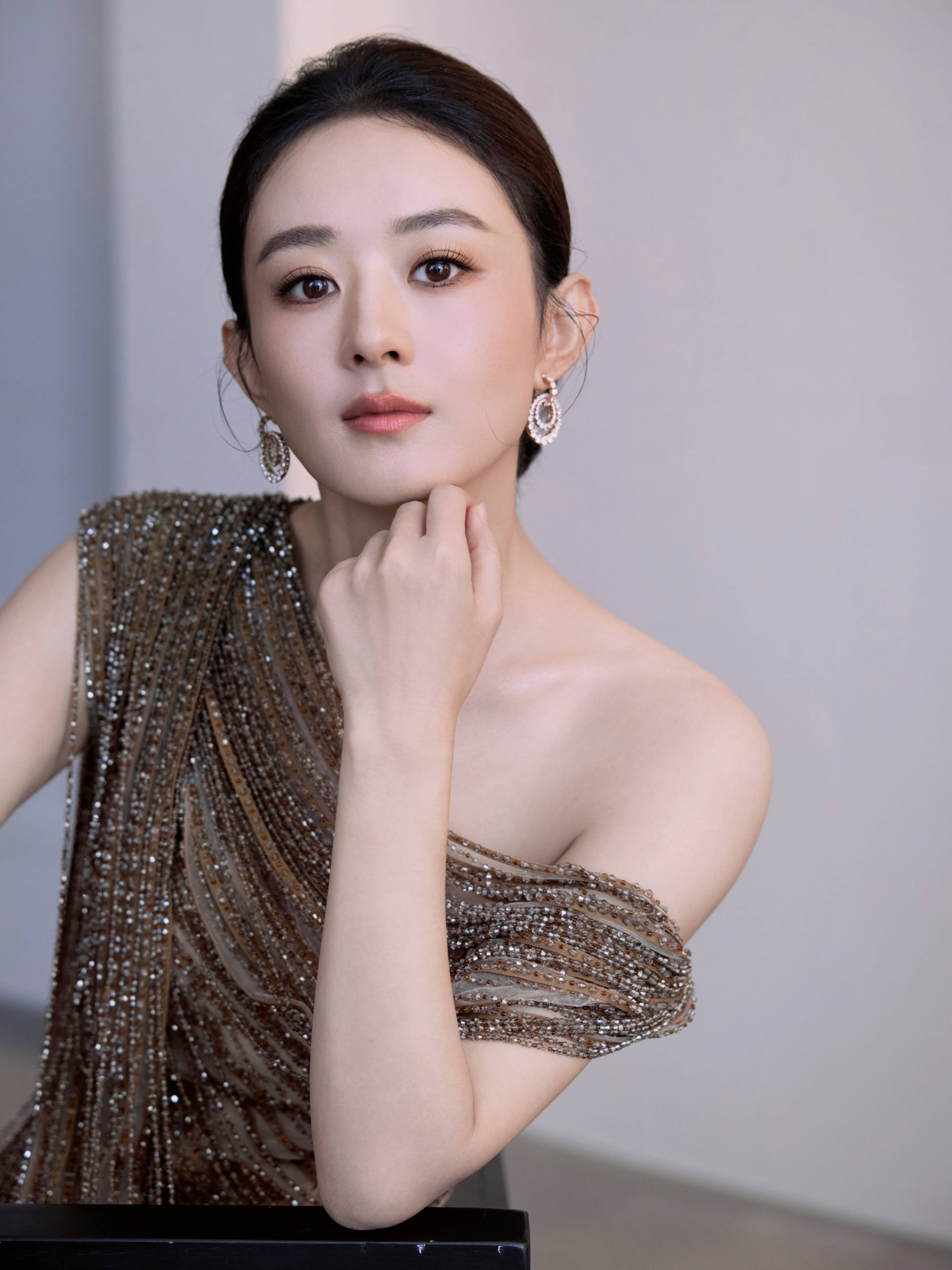 赵丽颖穿斜肩礼服,尽显闪耀之美。