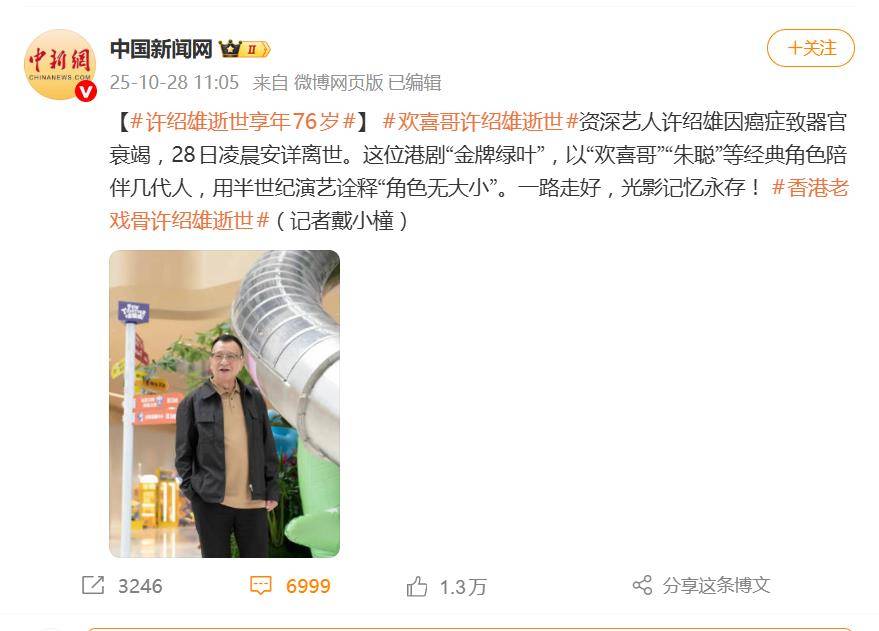 当流量明星如潮水来去,许绍雄用一生证明:戏份无轻重,唯有真心演绎的角色能穿透时光。正如网友所言:“他演了一辈子配角,却是无数人记忆中的主角。”这场跨越半世纪的谢幕,留下的不仅是“欢喜哥”的枭雄微笑,更是一个时代对敬业者的集体致敬。