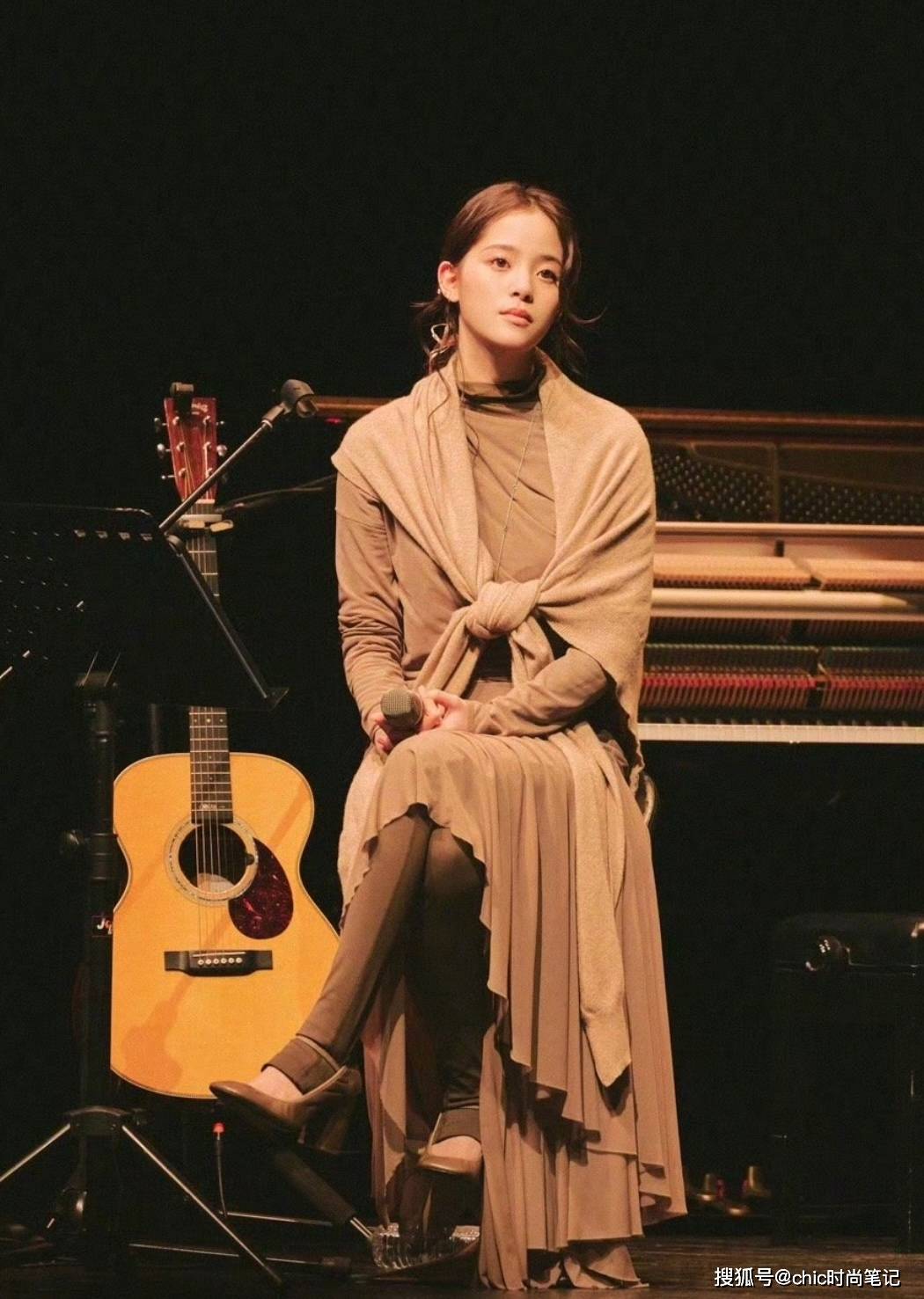 通过用深浅不一的棕色去穿出层次感,莫代尔面料的上衣、长裙、披肩有很好的垂坠感,让人轻盈又仙气,自带淑女感。