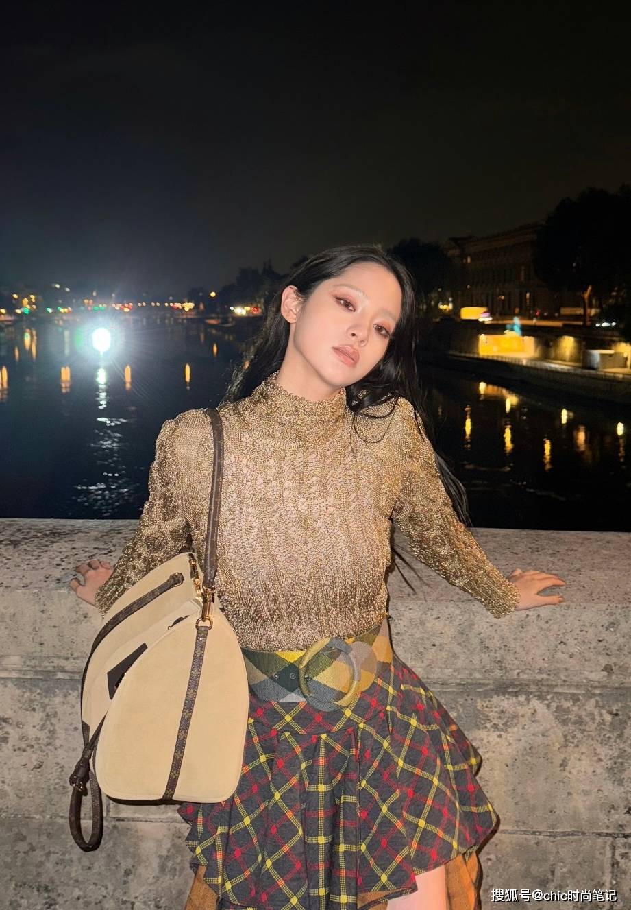 欧阳娜娜的格纹元素穿搭巨巨巨多!比如这条自带学院风的格纹百褶裙,配上棕色系打底T恤,薄绒外套俏皮万分,是00后爱穿的风格~