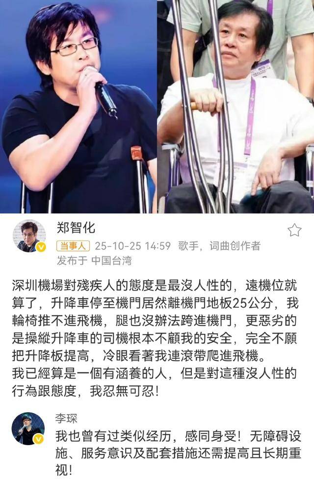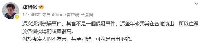 郑智化作为公众人物,能站出来为残疾人发声,至少让更多人关注到了特殊旅客的出行需求,而深圳机场也确实因此优化了服务流程,从这一点来说,他的发声还是有积极意义的。