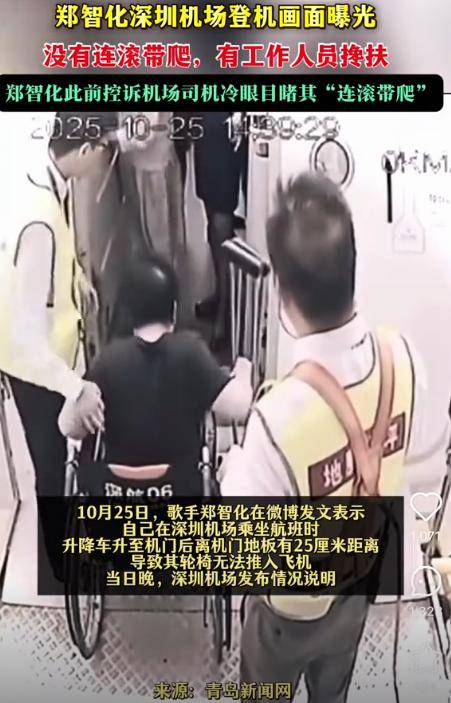 与此同时,也公布了郑智化当天的登机视频,能看到当时有两名工作人员专门协助郑智化登机,并非他说的“连滚带爬”。